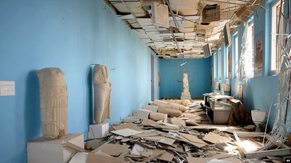 Pahatan batu yang menyerupai seorang pendeta kuno termasuk salah satu dari ratusan barang antik yang berhasil diselamatkan oleh pemerintah Suriah dan kembali dipajang di Damaskus minggu ini, sebagai pengingat dari warisan perang yang telah berlangsung selama tujuh tahun.